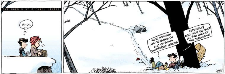 , from January 17, 1999. I know nothing about the strip, but it is an obvious reference to Calvin and Hobbes' sled rides through terror.